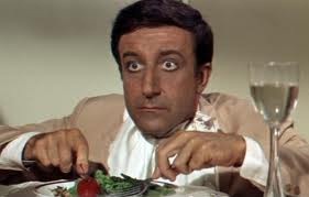 The Party, a 1968 comedy directed by Blake Edwards, features a foreign actor, played by Peter Sellers, at odds with Western culture as he accidentally attends a lavish Hollywood dinner party. His ignorance of American customs leads to mistakes and serves as the premise for humorous situations. Interestingly, Sellers plays a small part in this particular scene, where the focus centers around the drunk waiter. The scene is reminiscent of a Jacques Tati film, where surrounding sound, rather than direct dialog, contribute to the mood of the moment.