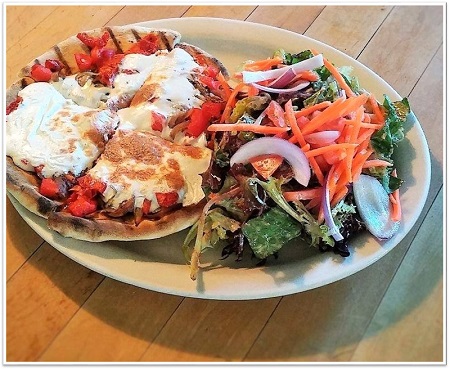 - Green Mountain Flatbread – Grilled Portobello, Charcoaled Onion, Roasted Red Pepper, Grilled Zucchini, Oven Dried Tomato, Homemade Mozzarella.