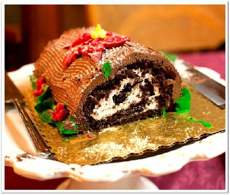 People had been baking in the hearth all along, but the smaller hearth invited smaller scale baking. This, some maintain, was the impetus for devising a special treat that would honor the Solstice or Christian festivities (depending on one’s tradition). A log-shaped dessert aptly reflected the desire to honor feast and tradition. The French are said to have come up with this delicious idea. But this may be due mainly to the fact that they were first to publish formal recipes. The Yule Log, in its new cake incarnation, probably appeared in homes across Europe naturally.